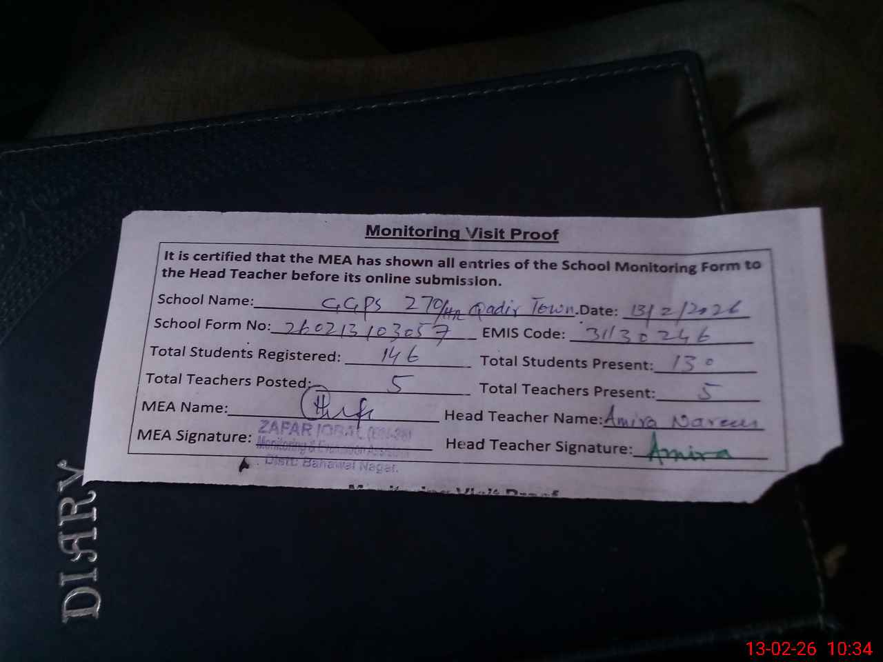 | Monitoring Date: 13-02-2026 | Start Time: 13-02-2026 10:14 AM | End Time: 13-02-2026 10:34 AM | Name of MEA: Za**** Iq**** BN**** | |