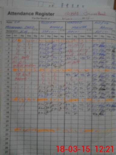 | CNIC | Full Name | Designation | R/C | Absence During Last Calender Month |