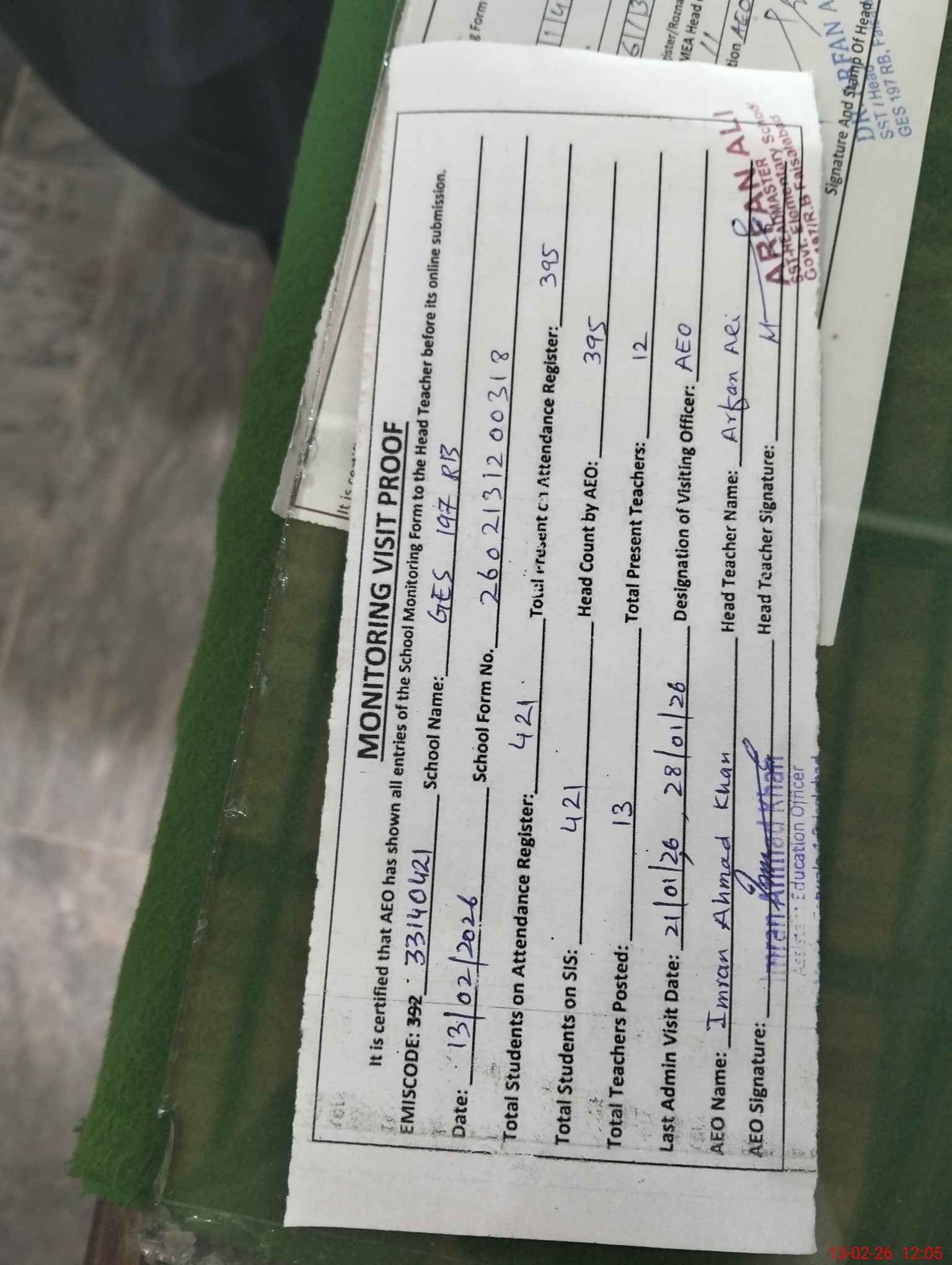 | EMIS Code: 33140421 | Name of School: GES CHAK 197 RB | |||