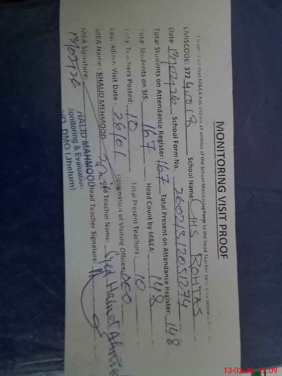 | EMIS Code: 37240018 | Name of School: GHS ROHTAS | |||