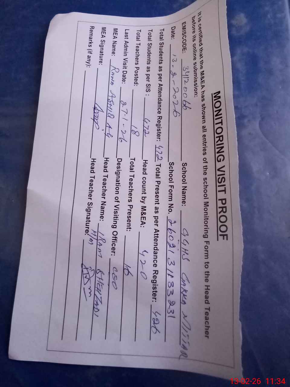 | EMIS Code: 34120066 | Name of School: GGHS GAKKA MITTAR | |||