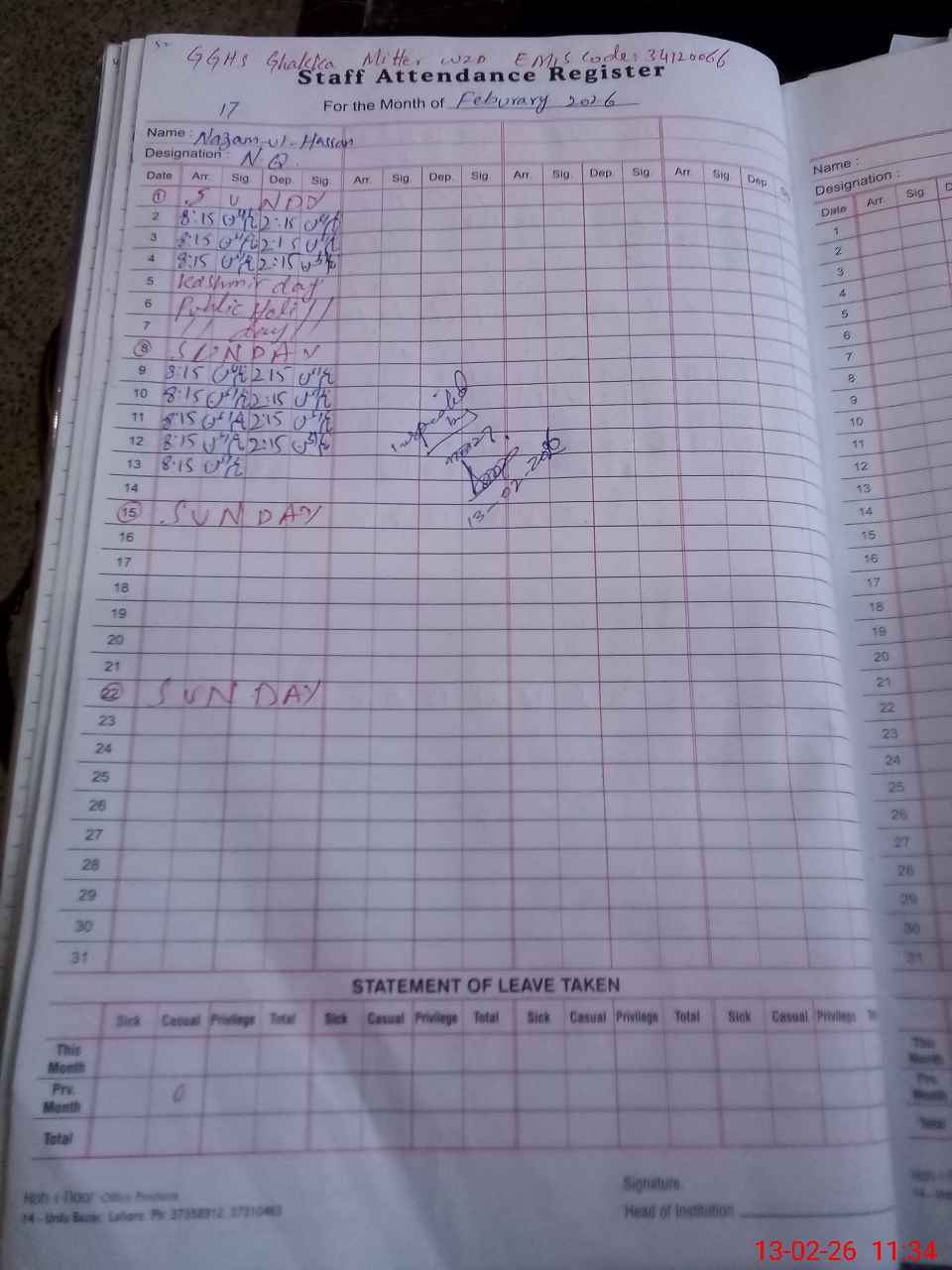 | 34**** | Ja**** Ak**** | EST Urdu | Regular | 0 | 0 | 0 | 0 | 0 | 0 | 0 | 0 | 0 | Casual |