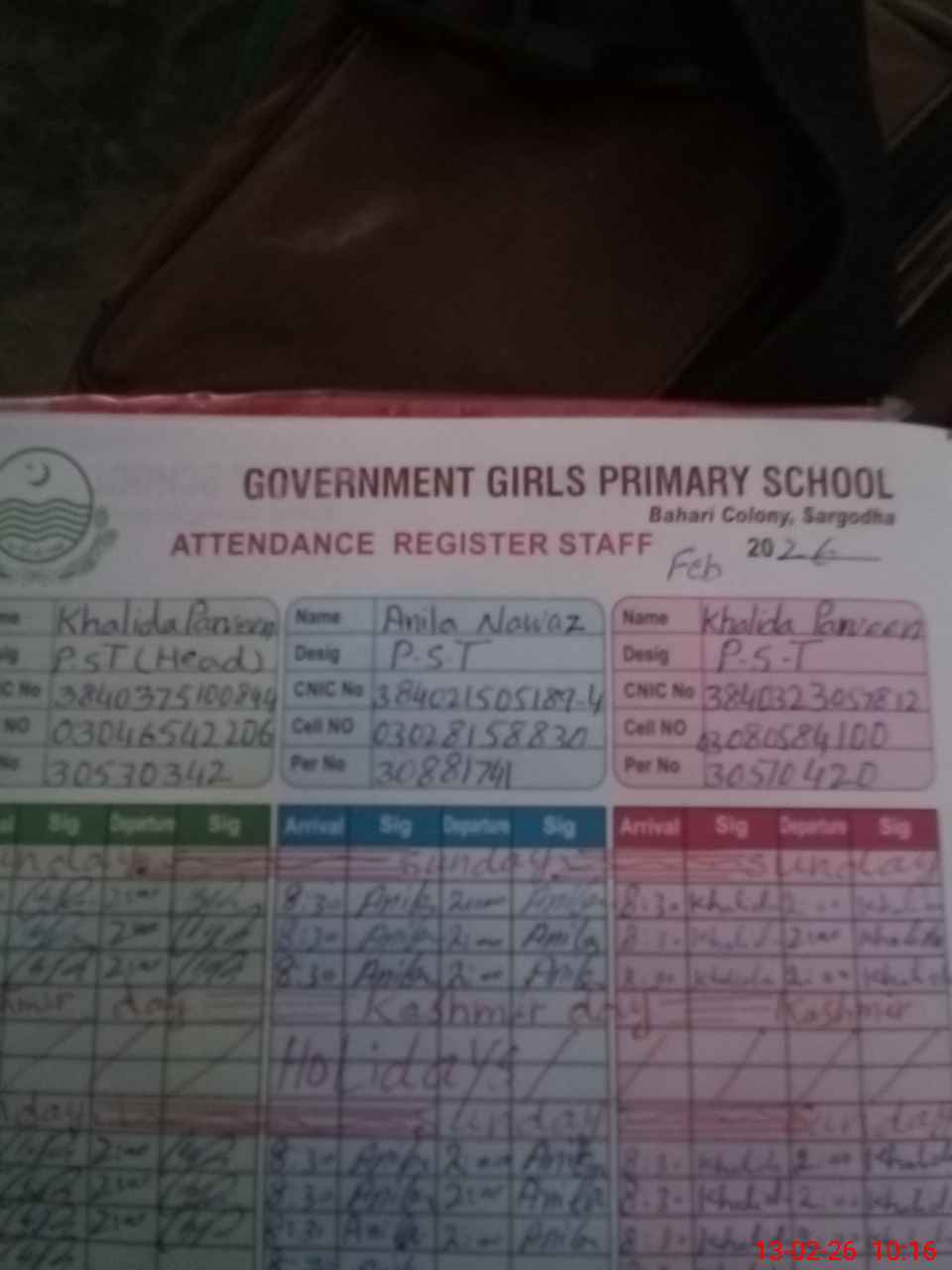 | EMIS Code: 38420822 | Name of School: GGPS BEHARI COLONY SARGODHA | |||