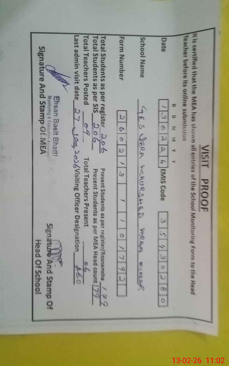 | Attendance Register | Head Teacher | MEA with School | Visit Proof |