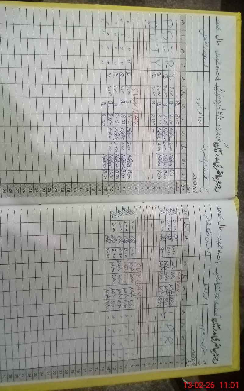 | CNIC | Full Name | Designation | R/C | Absence During Last Calender Month |