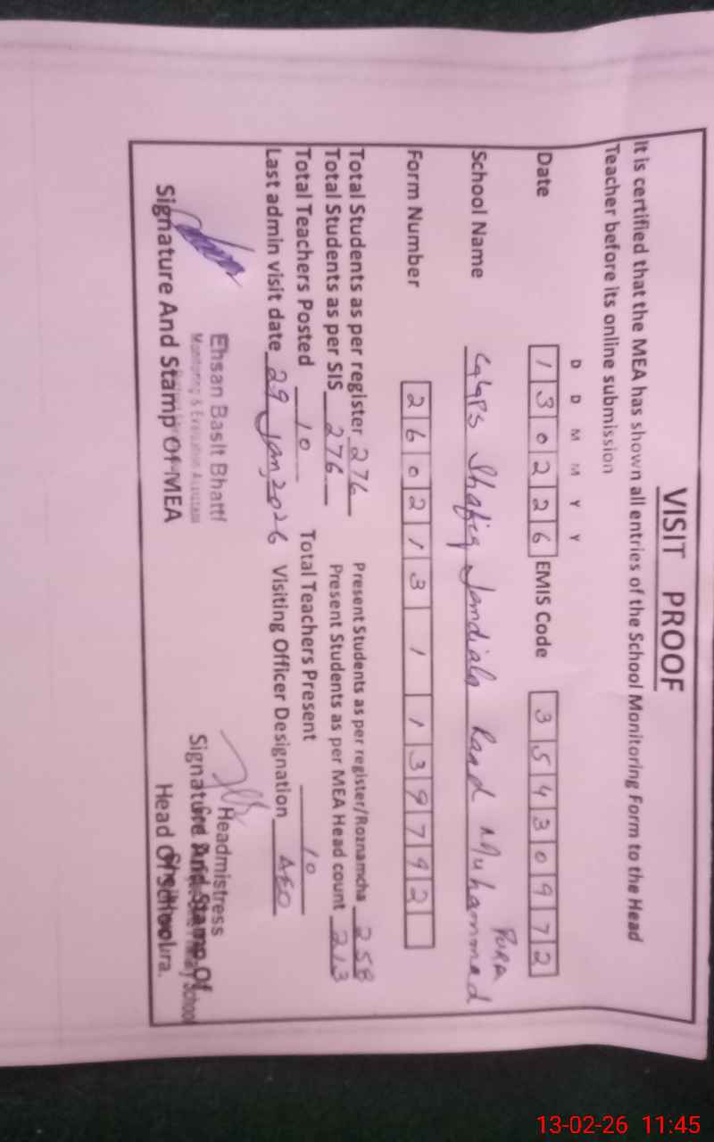 | EMIS Code: 35430972 | Name of School: GGPS SHAFIQ JANDIALA ROAD MUHAMMAD PURA | |||
