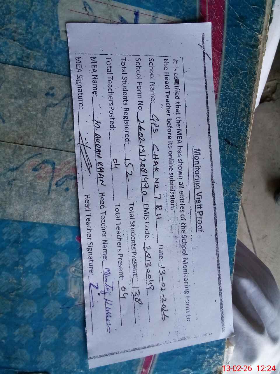 | EMIS Code: 38130049 | Name of School: GPS CHAK NO 7 RH | |||