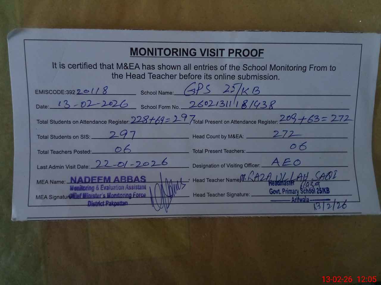 | EMIS Code: 39220118 | Name of School: GPS 25 KB | |||