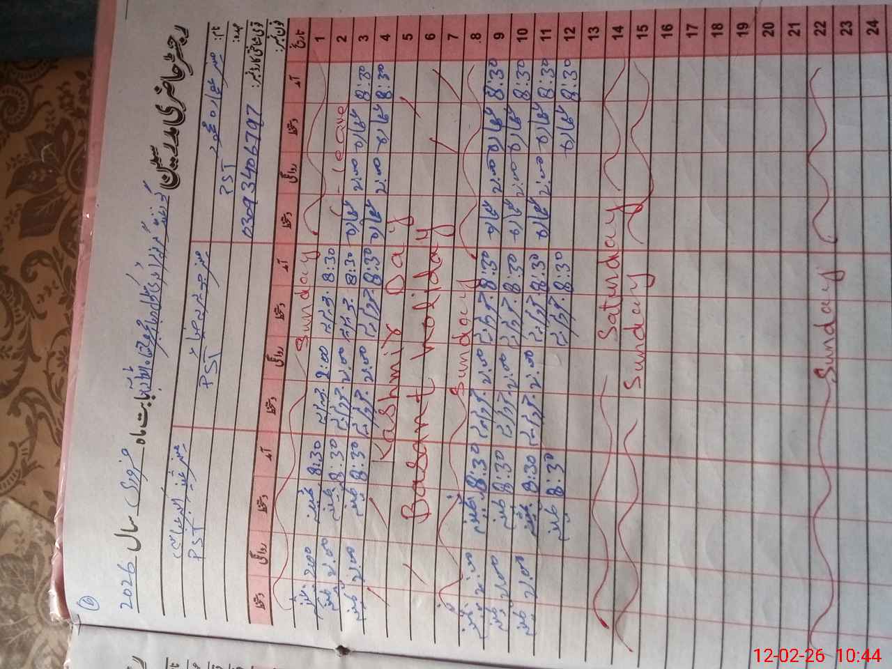 | Remarks (Use Separate Page if Required): low attendance of students due to local urs of saint Majroh shah | |||||