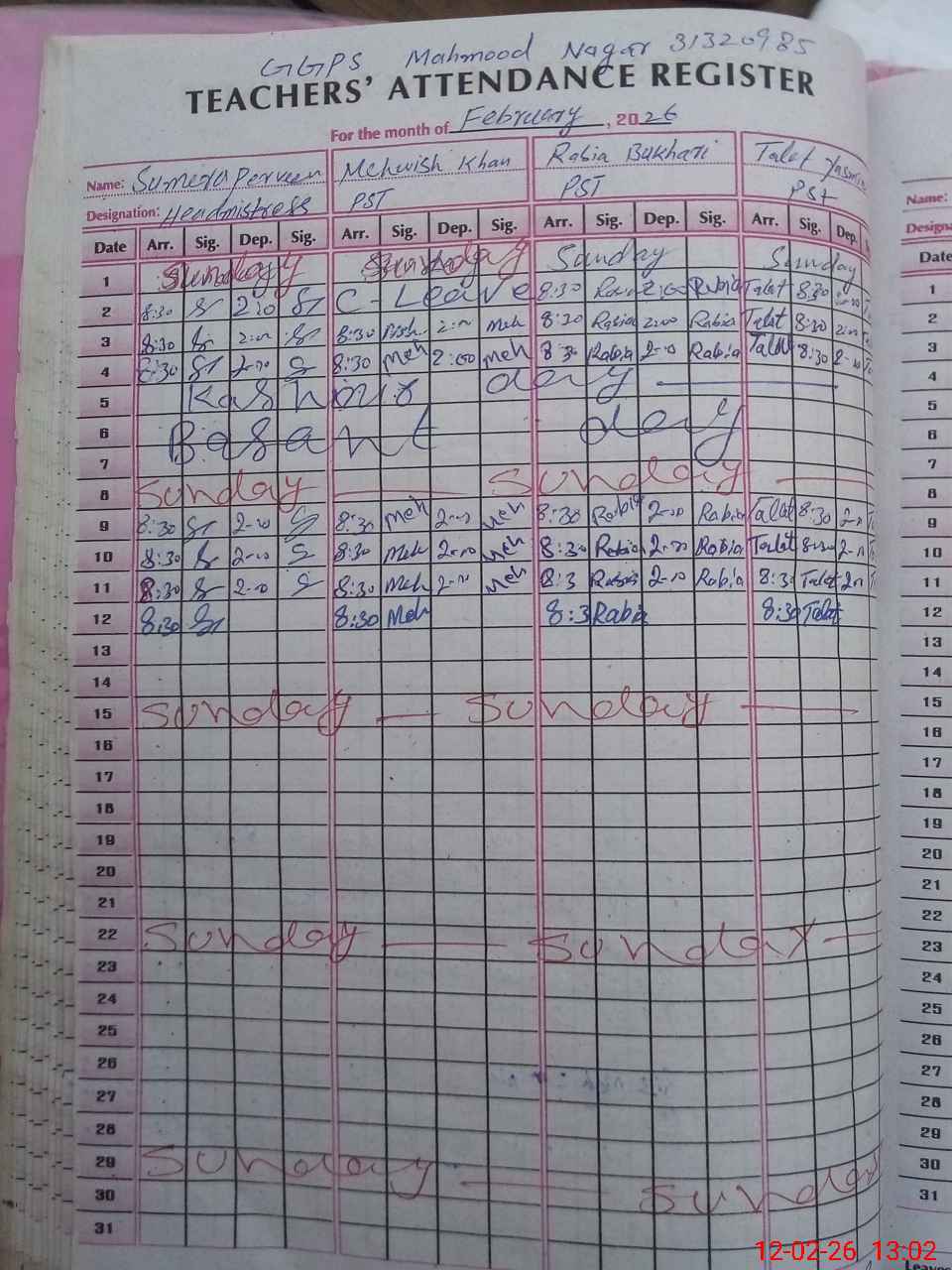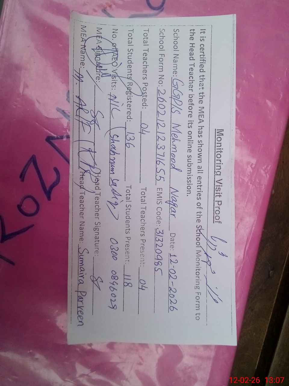 | EMIS Code: 31320985 | Name of School: GGPS MAHMOOD NAGAR | |||