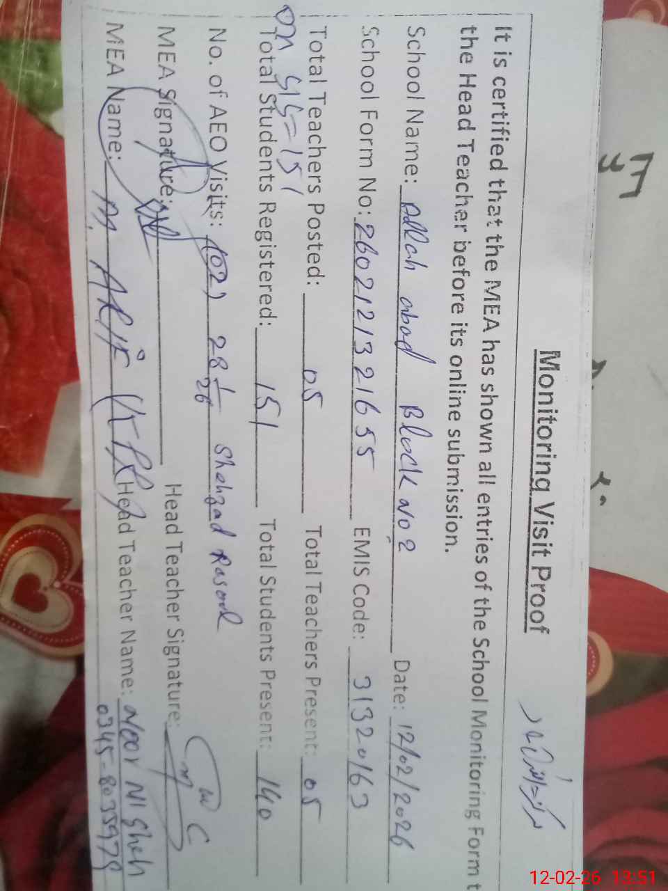 | EMIS Code: 31320163 | Name of School: GPS ALLAH ABAD BLOCK NO 2 | |||