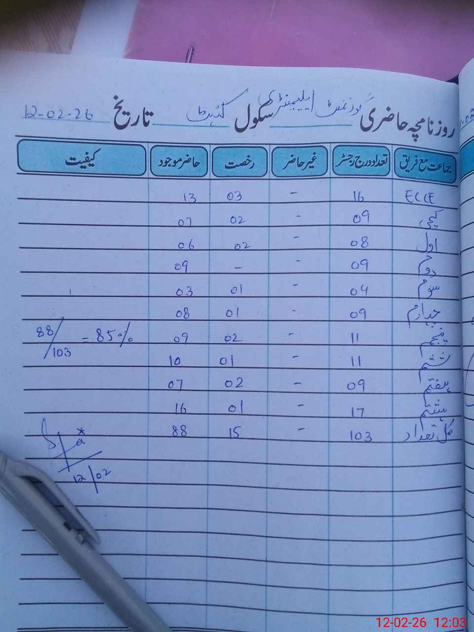 | Remarks (Use Separate Page if Required): 85 shown present on roznamcha whereas only 61 students were actually head count at the time of visit | |||||