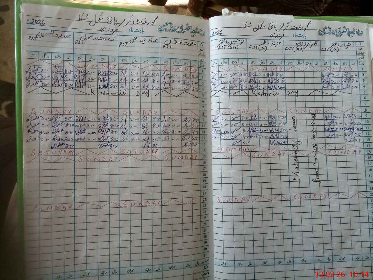 | Leave | Duty | Absent | Maternity | Medical | Ex- Pak |