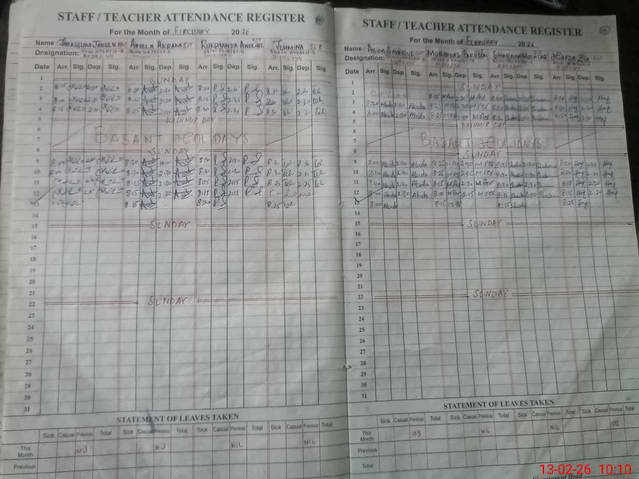 | Leave | Duty | Absent | Maternity | Medical | Ex- Pak |