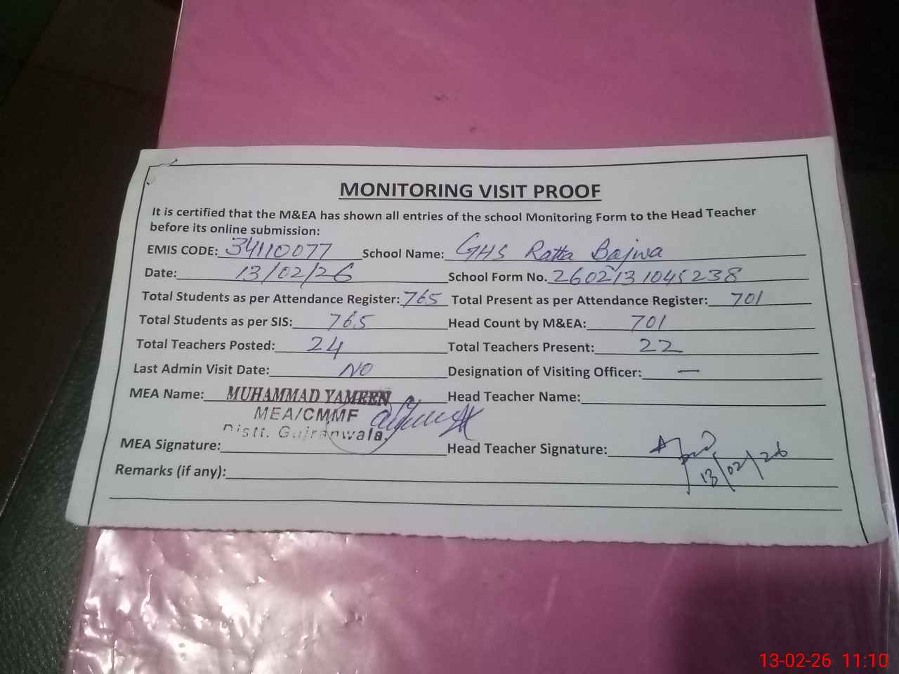 | EMIS Code: 34110077 | Name of School: GHS RATTA BAJWA | |||