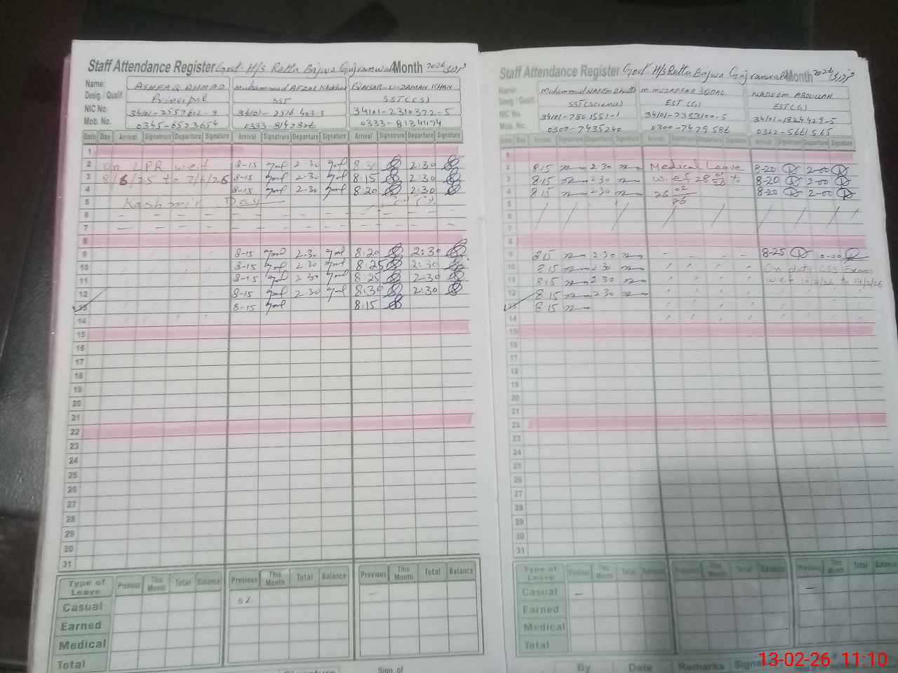 | 34**** | Na**** Ab**** | EST Urdu | Regular | 0 | 0 | 0 | 0 | 0 | 0 | 0 | 0 | 0 | Exam Duty |