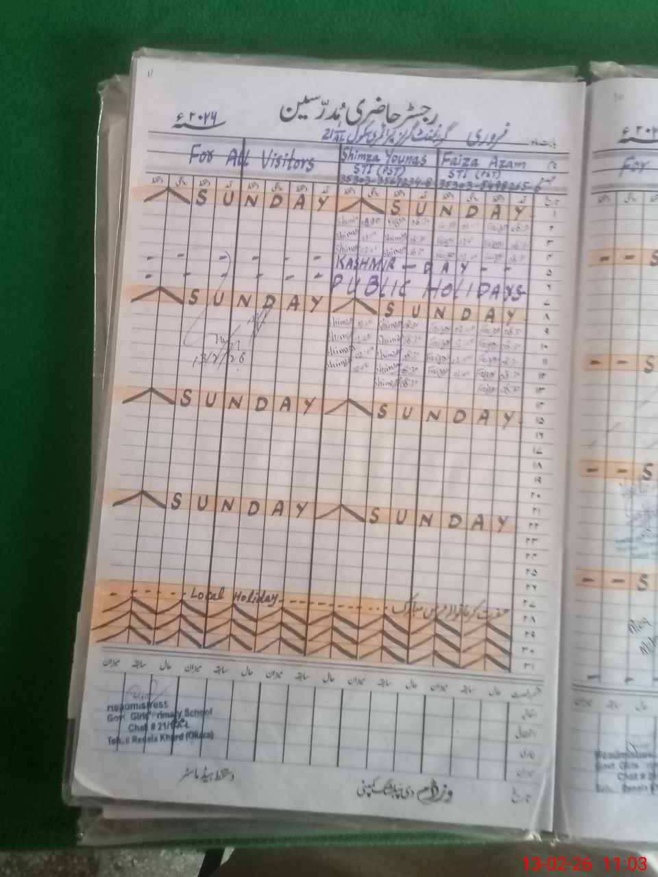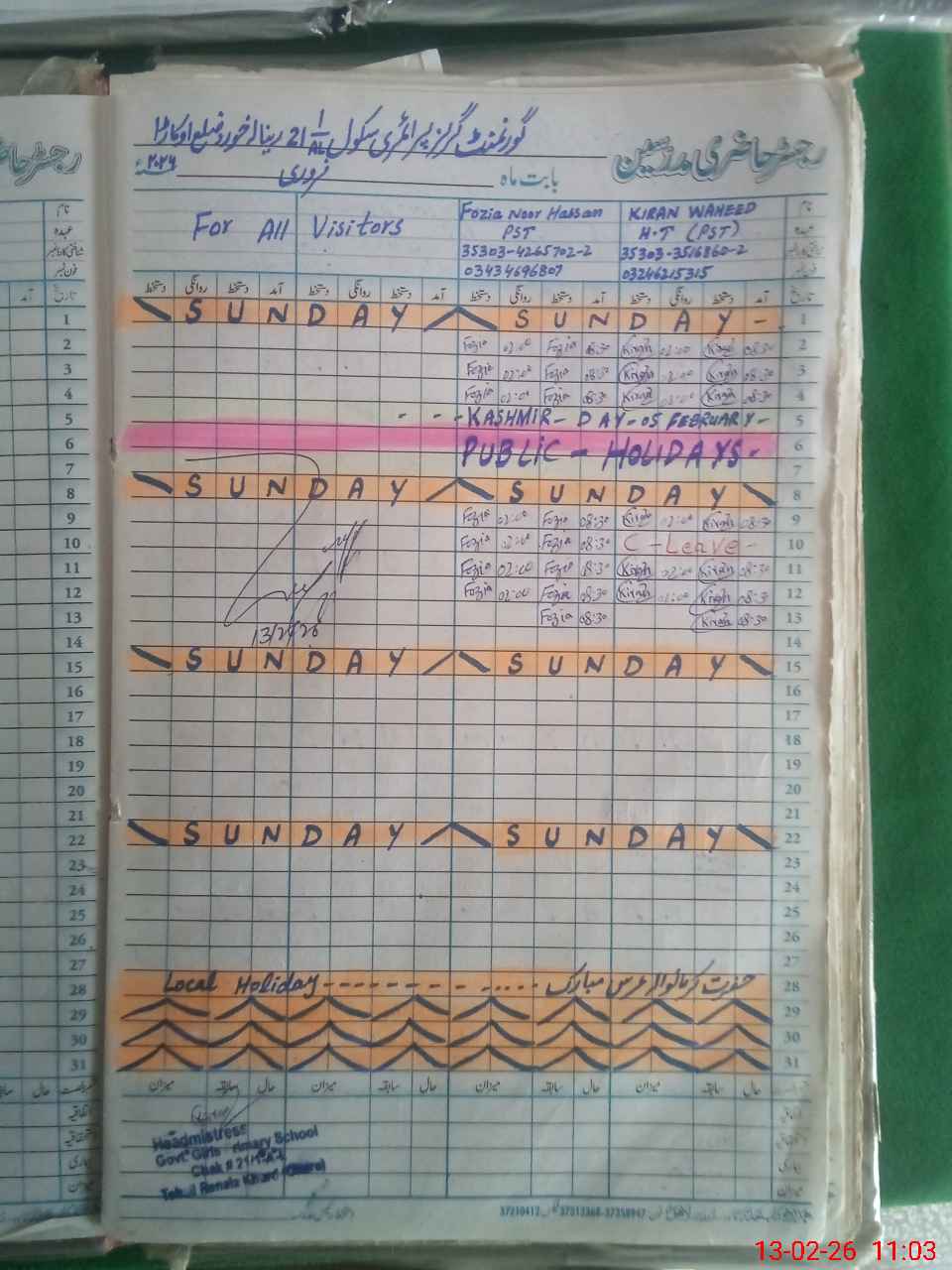 | Name: KI**** WA**** Designation: (School Headmaster's/Headmistress's) PST Phone/Cell Number: 03**** |