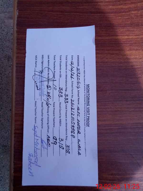 | EMIS Code: 31320414 | Name of School: GES MOADIB NOOR WALA | |||