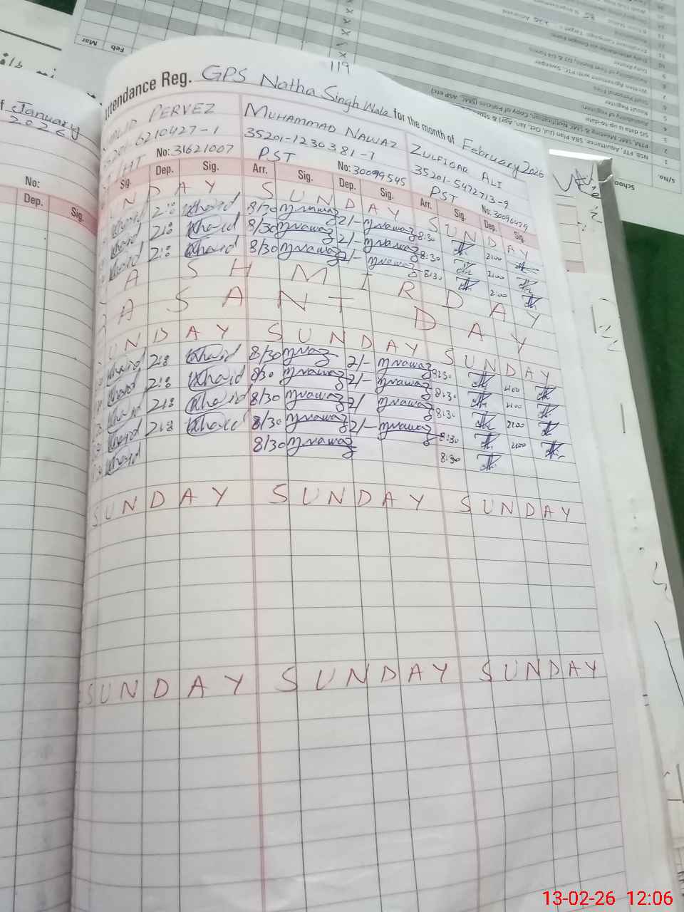 | CNIC | Full Name | Designation | R/C | Absence during last cal. month |