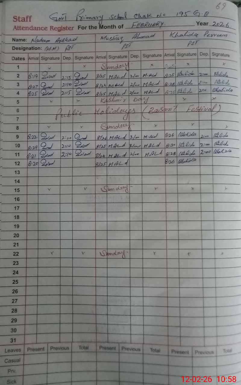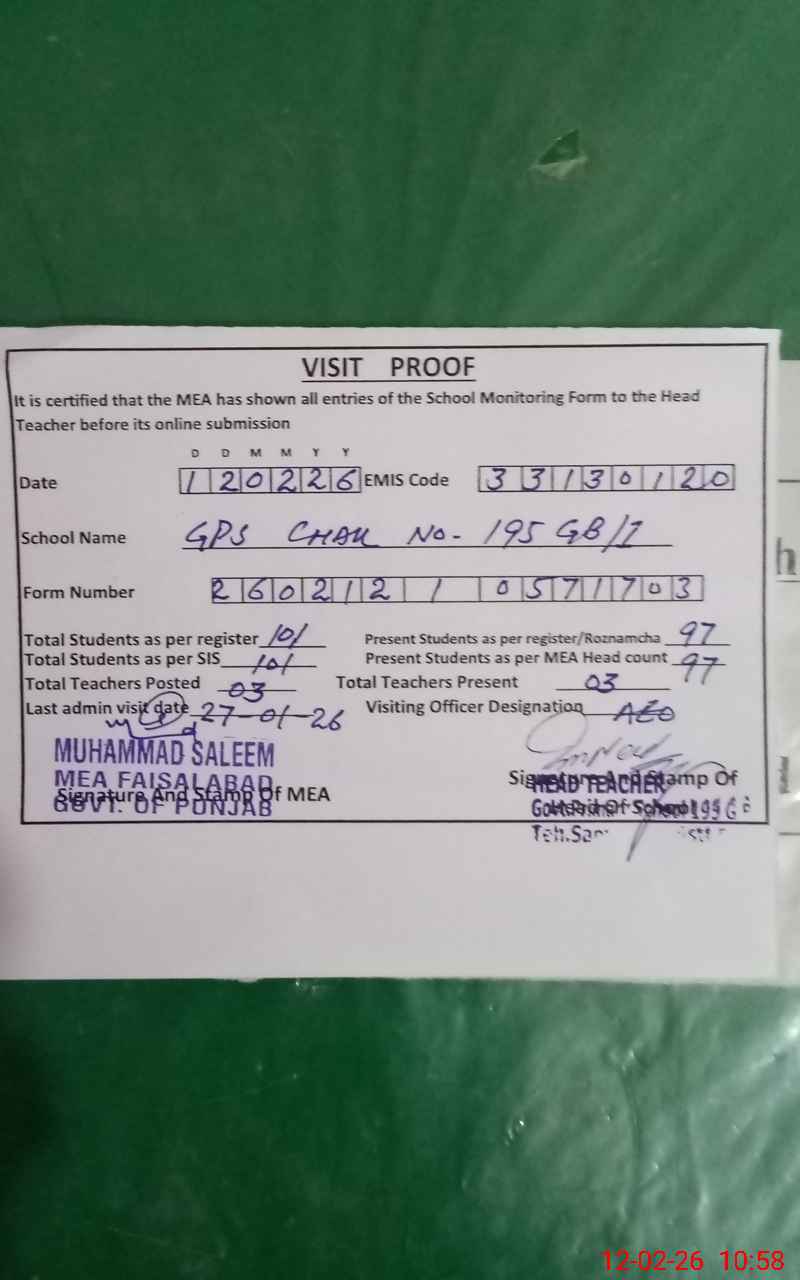 | Attendance Register | Head Teacher | MEA with School | Visit Proof |