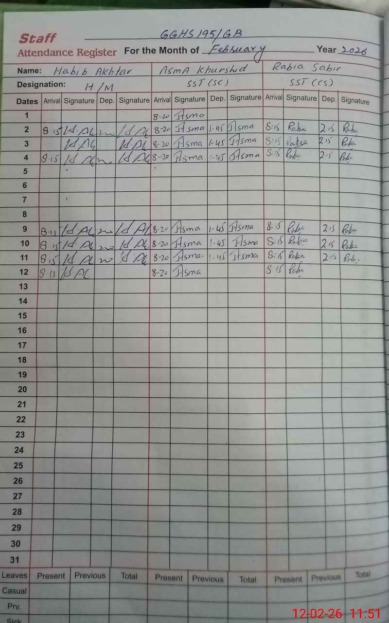 | Name: HA**** AK**** Designation: (School Headmaster's/Headmistress's) SST (GENERAL) Phone/Cell Number: 03**** |