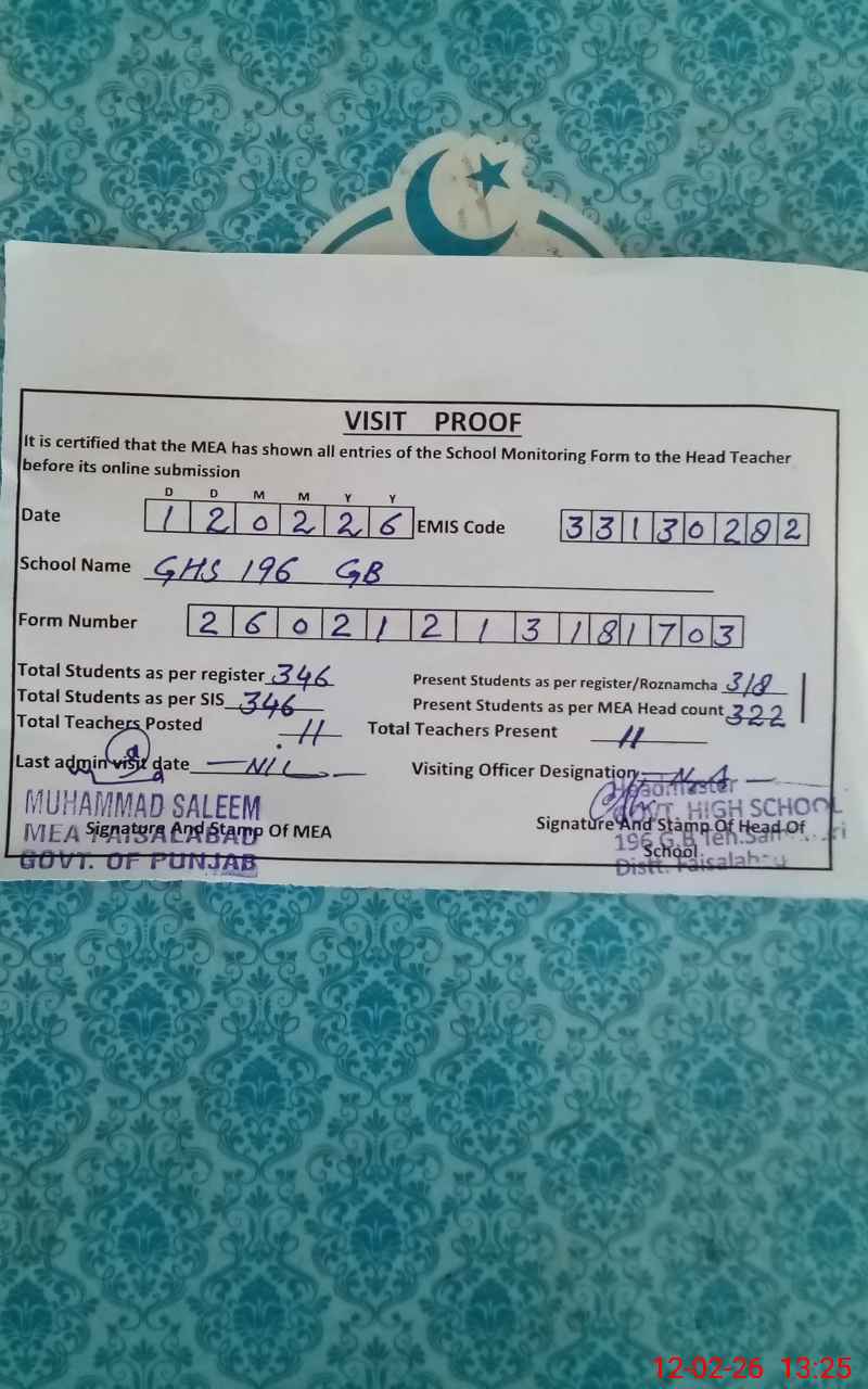 | EMIS Code: 33130282 | Name of School: GHS 196/GB | |||