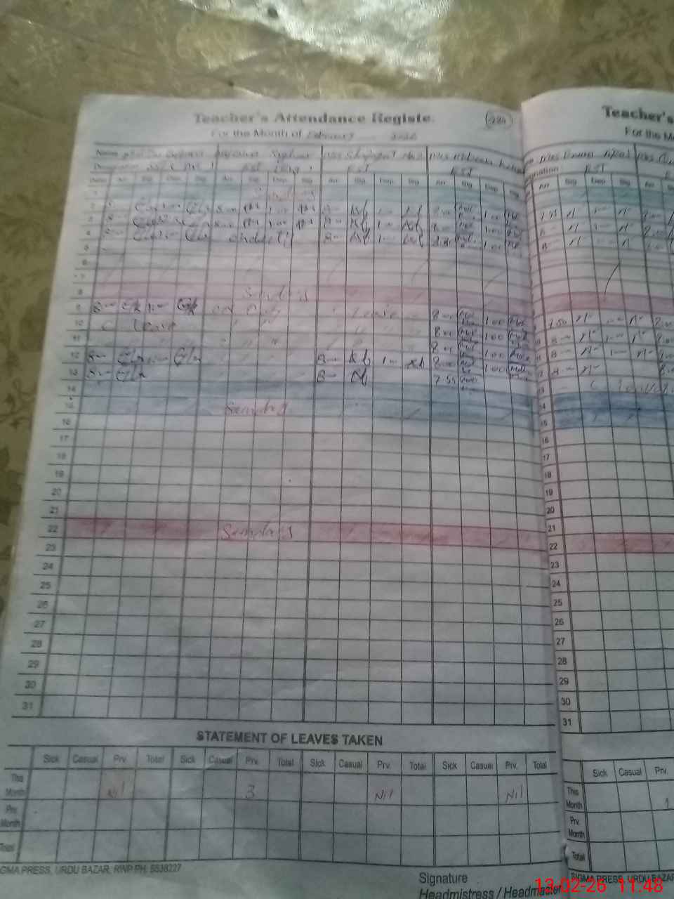 | 37**** | Uz**** Sa**** | EST English | Regular | 0 | 0 | 0 | 0 | 0 | 0 | 0 | 0 | 0 | Exam Duty |