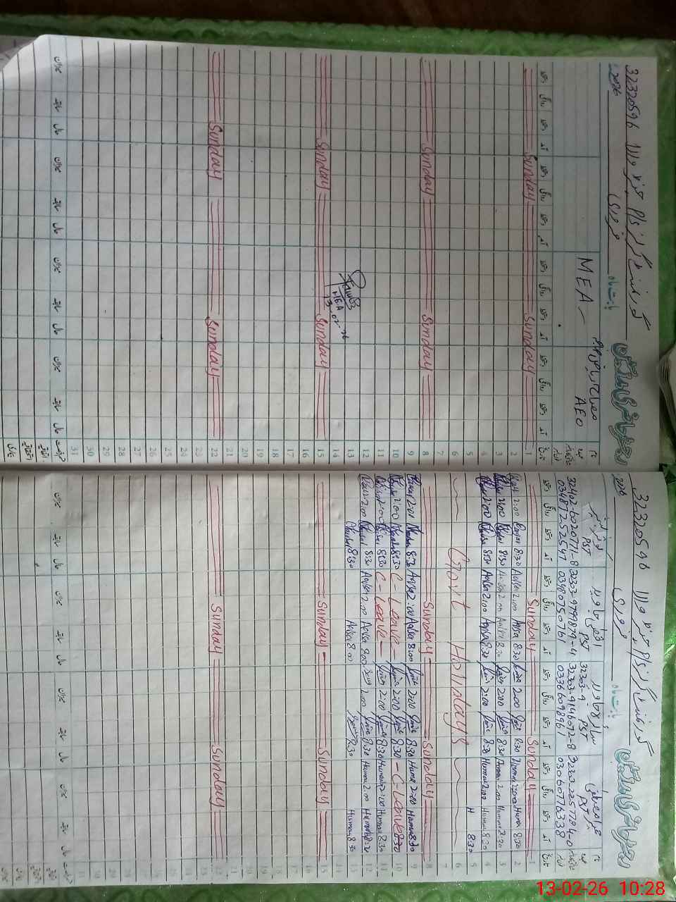 | Name of AEO: | AEO Contact No.: | MEA Phone#: 03**** | ||