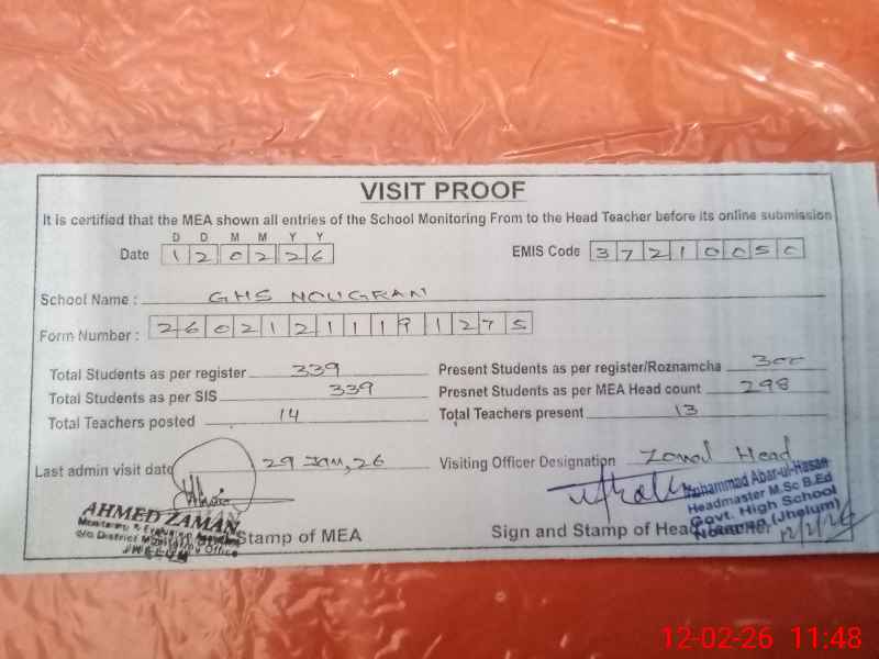| Certified that this School was Inspected by the Undersigned MEA/DMO Today and the Information Stated Above is as Per Record. | |||||
