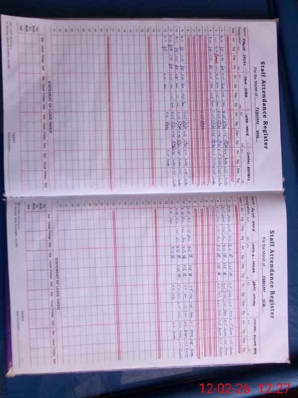 | CNIC | Full Name | Designation | R/C | Absence During Last Calender Month |