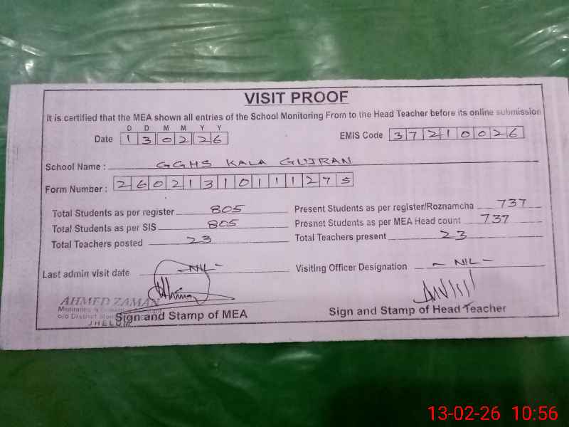 | EMIS Code: 37210026 | Name of School: GGHS KALA GUJRAN | |||