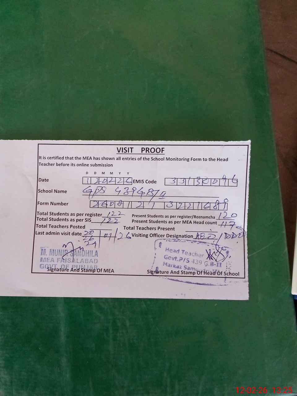 | EMIS Code: 33130096 | Name of School: GPS CHAK 439 GB II SAMUNDRI | |||