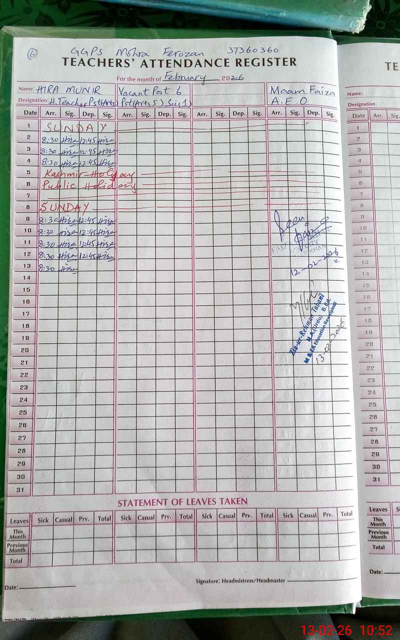 | Name: Hi**** Mu**** Designation: (School Headmaster's/Headmistress's) PST Phone/Cell Number: 03**** |