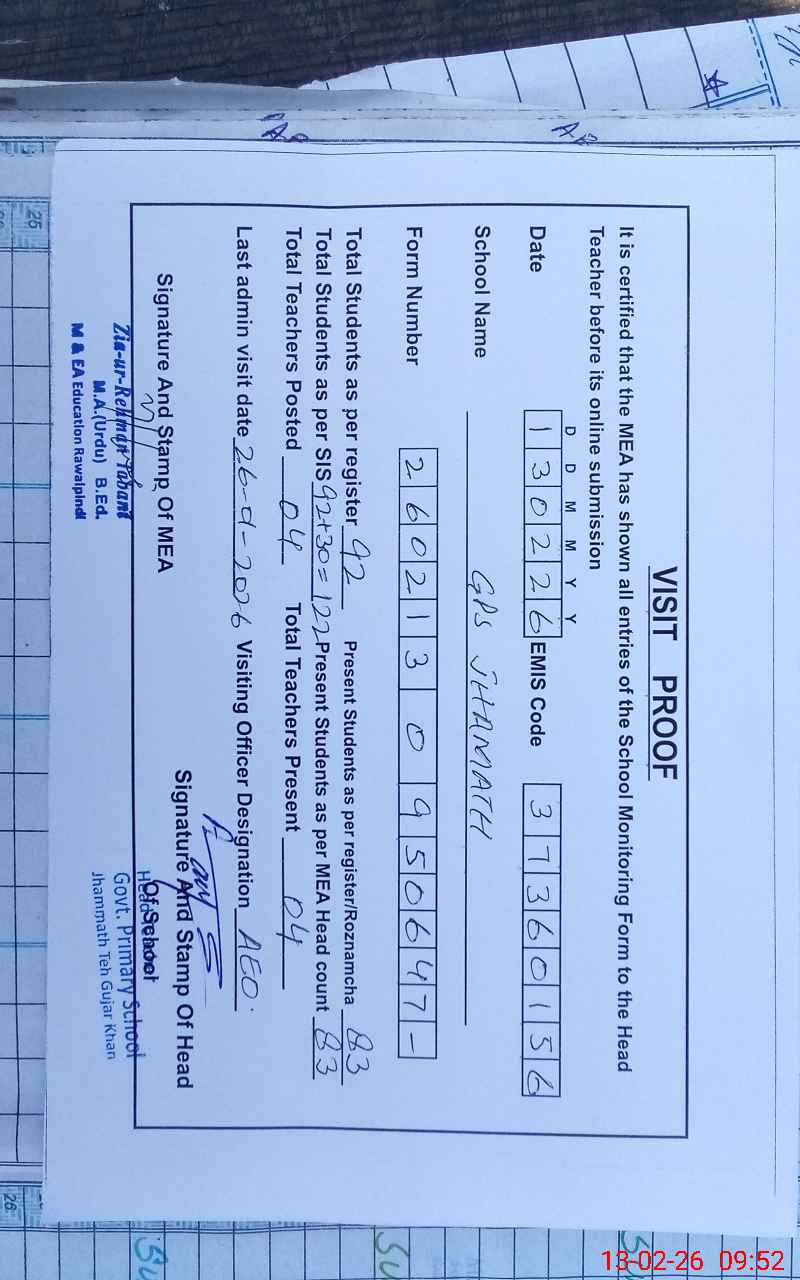 | EMIS Code: 37360156 | Name of School: GPS JHAMATH | |||