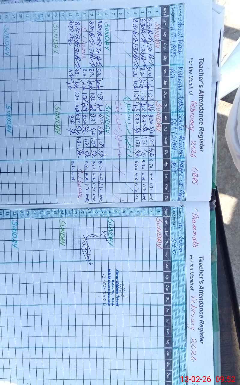 | Name: AB**** RA**** Designation: (School Headmaster's/Headmistress's) PST Phone/Cell Number: 03**** |