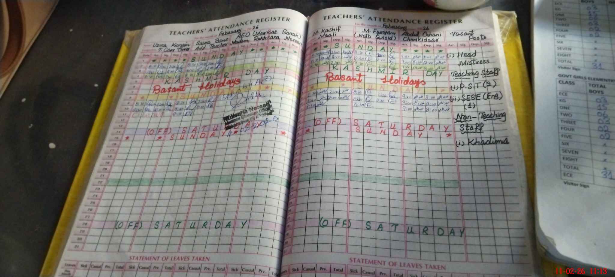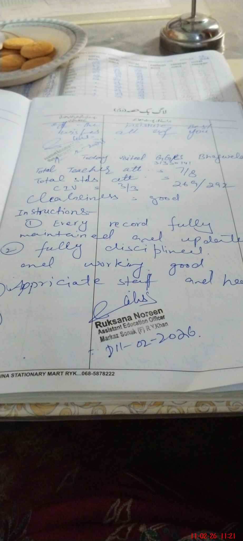 | Remarks (Use Separate Page if Required): all records are fully maintained and updated on time and all classes are fully managed. | |||||