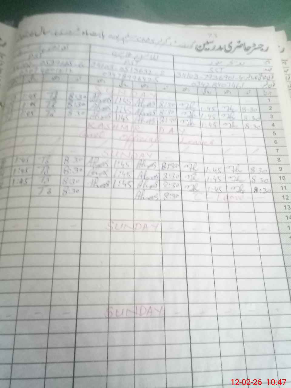 | CNIC | Full Name | Designation | R/C | Absence During Last Calender Month |