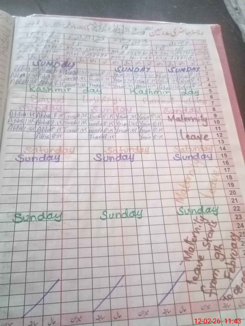 | Leave | Duty | Absent | Maternity | Medical | Ex- Pak |