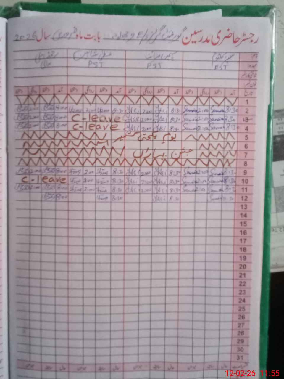 | CNIC | Full Name | Designation | R/C | Absence During Last Calender Month |