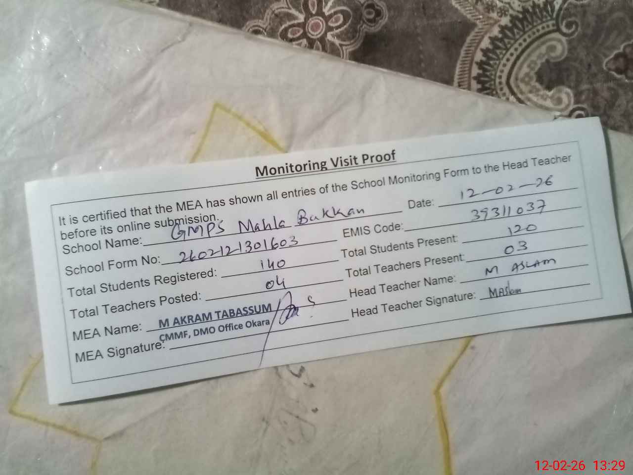 | EMIS Code: 39311037 | Name of School: GMPS MAHLA BUKKAN | |||