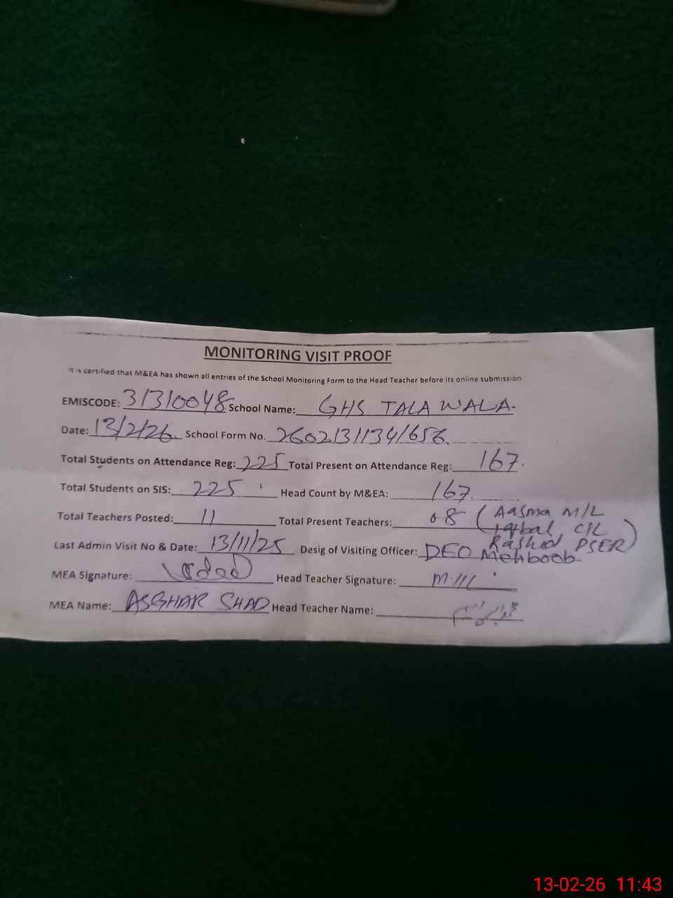 | EMIS Code: 31310048 | Name of School: GHS TALA WALA | |||