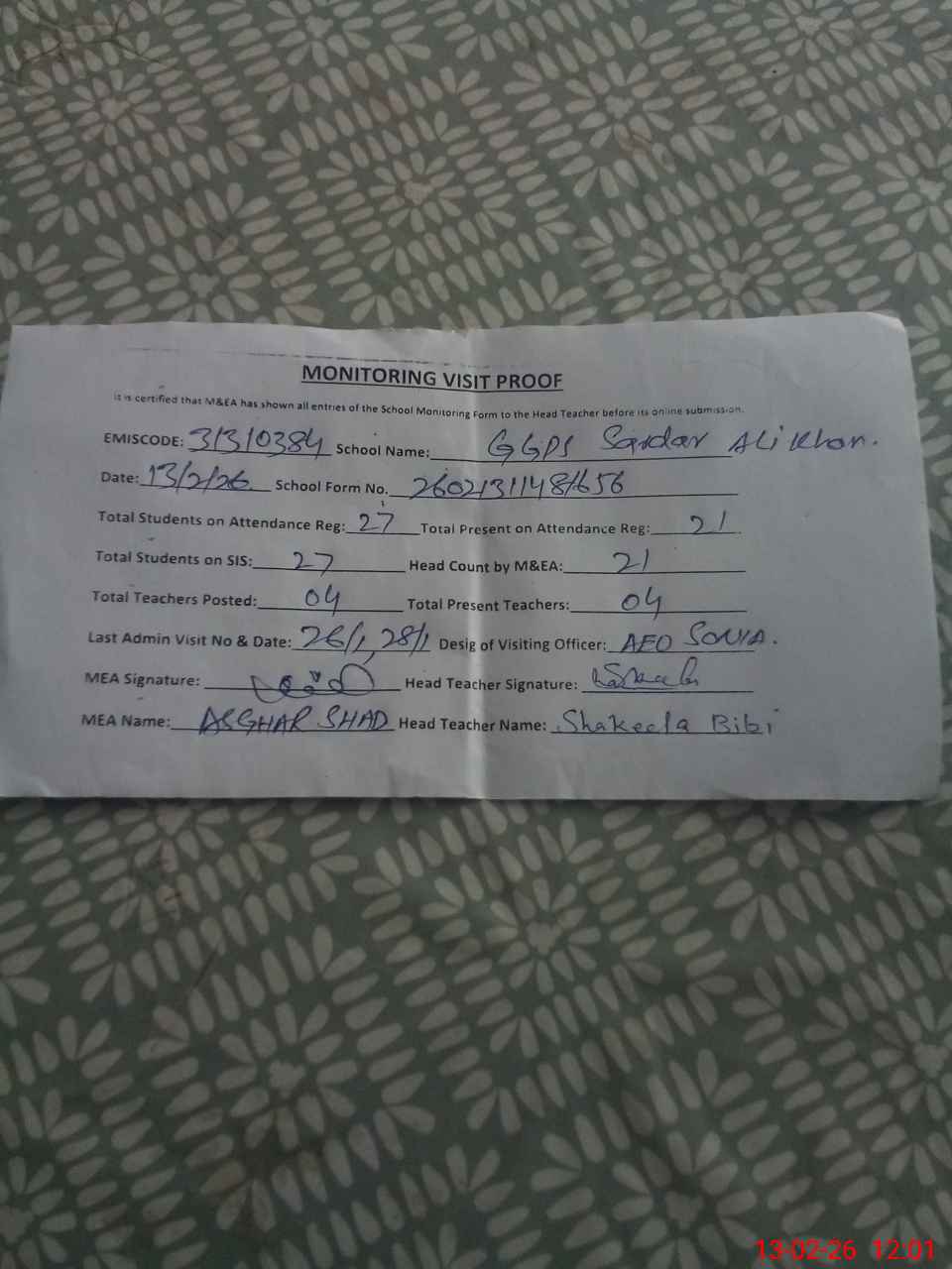 | EMIS Code: 31310384 | Name of School: GGPS DERA HAJI SARDAR ALI KHAN | |||