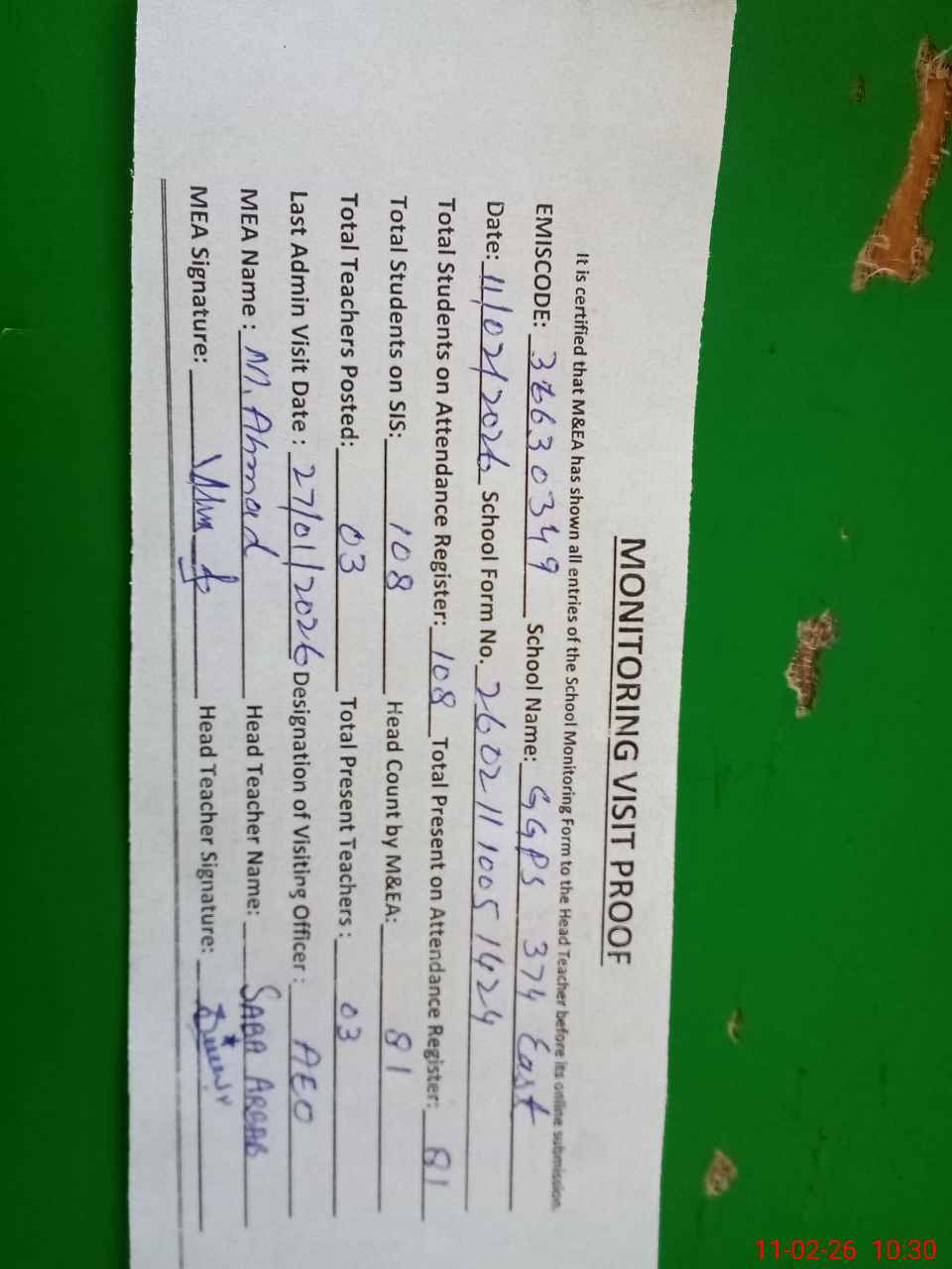 | EMIS Code: 36630349 | Name of School: GGPS 374/EAST 374/WB | |||