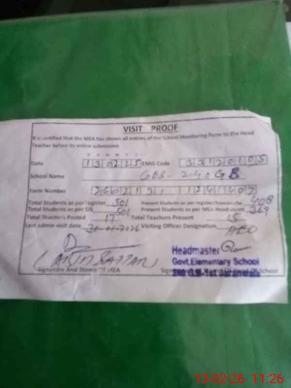 | Certified that this School was Inspected by the Undersigned MEA/DMO Today and the Information Stated Above is as Per Record. | |||||