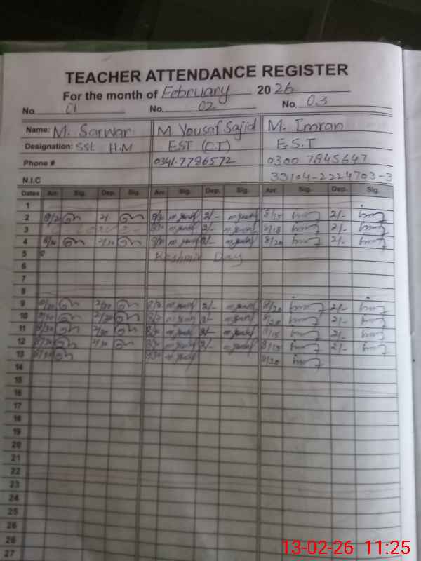 | Name: MU**** Sa**** Designation: (School Headmaster's/Headmistress's) SST Phone/Cell Number: 03**** |
