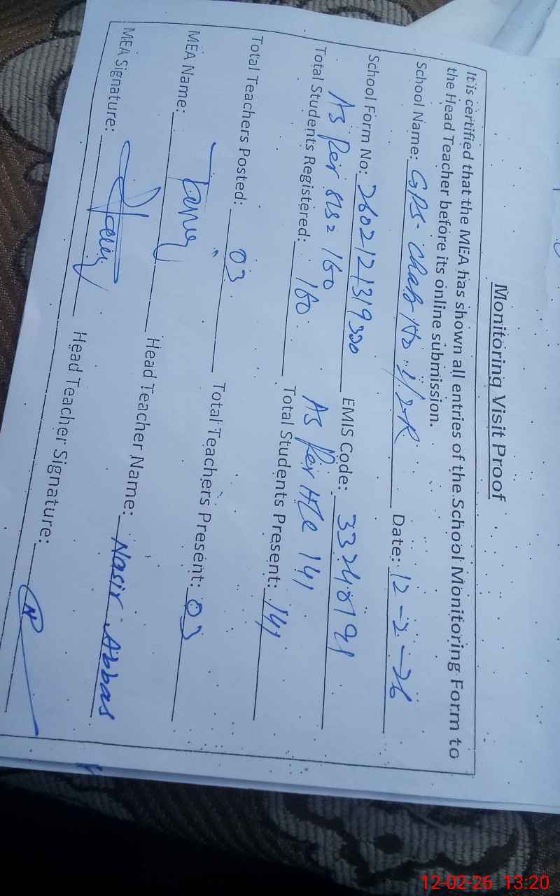 | EMIS Code: 33240191 | Name of School: GPS CHAK NO 1/2-R GARH MAHRAJA | |||