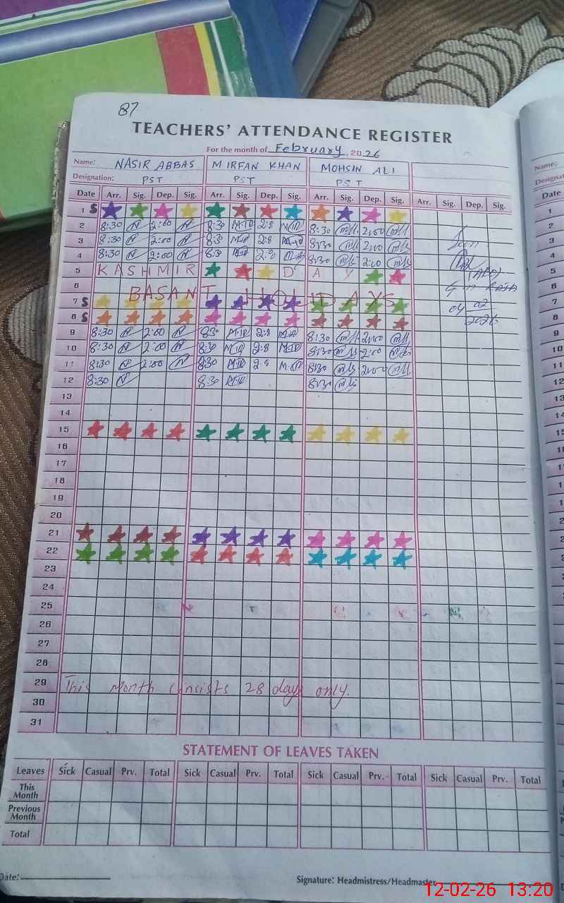 | Attendance Register | Head Teacher | MEA with School | Visit Proof |