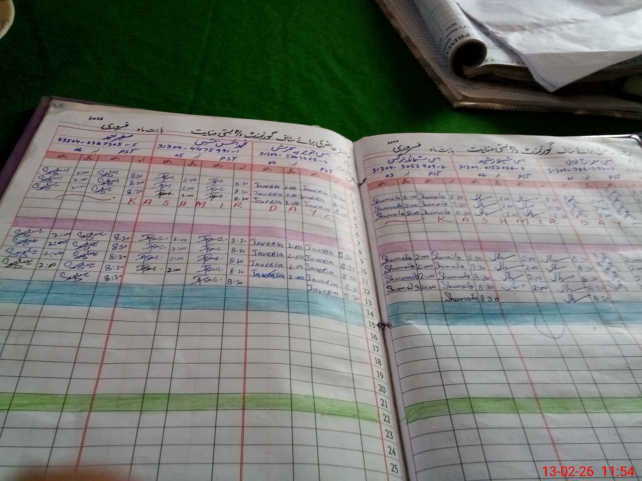 | CNIC | Full Name | Designation | R/C | Absence During Last Calender Month |