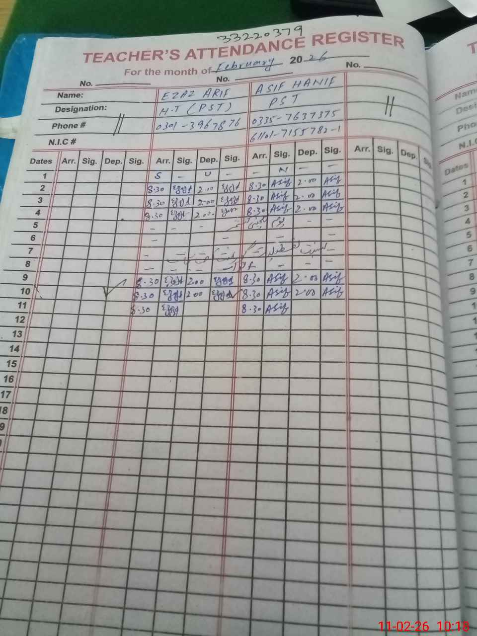 | Name: EZ**** AR**** Designation: (School Headmaster's/Headmistress's) PST Phone/Cell Number: 03**** |