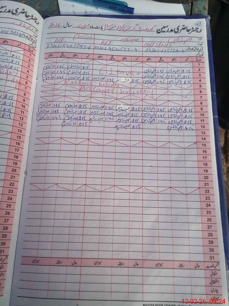 | CNIC | Full Name | Designation | R/C | Absence During Last Calender Month |